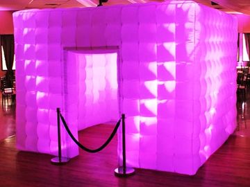 This booth is our inflatable LED booth. Requires at least a 10x10 area and can be used indoor or outdoors.